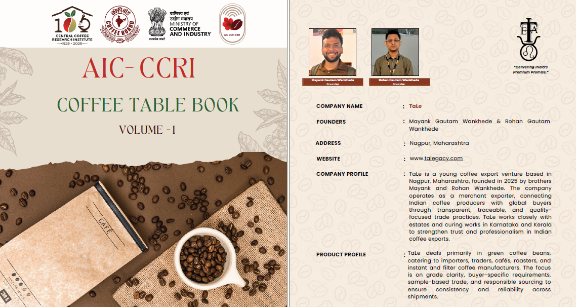 TaLe has been featured in the AIC–CCRI Coffee Table Book, published by the Atal Incubation Centre – Central Coffee Research Institute (AIC-CCRI-CED), Coffee Board of India, as part of the centenary celebrations of CCRI